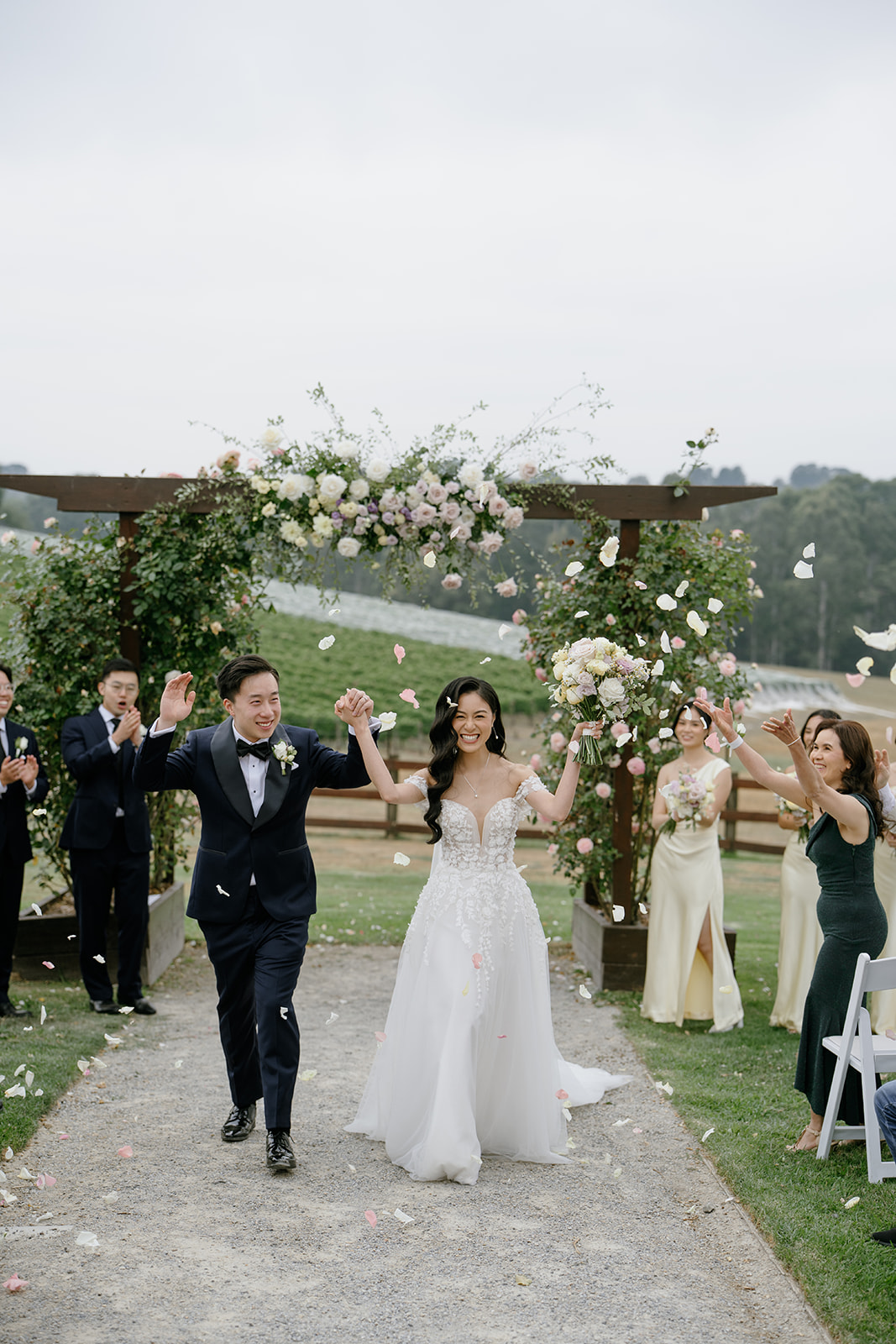 At Yarra Ranges Estate, your wedding ceremony is framed by the beauty of the Yarra Valley. The vineyard pathway features a lush vineyard backdrop, rolling hills, a charming red brick staircase, and a rose-lined path, creating one of the most romantic wedding settings in the region.
